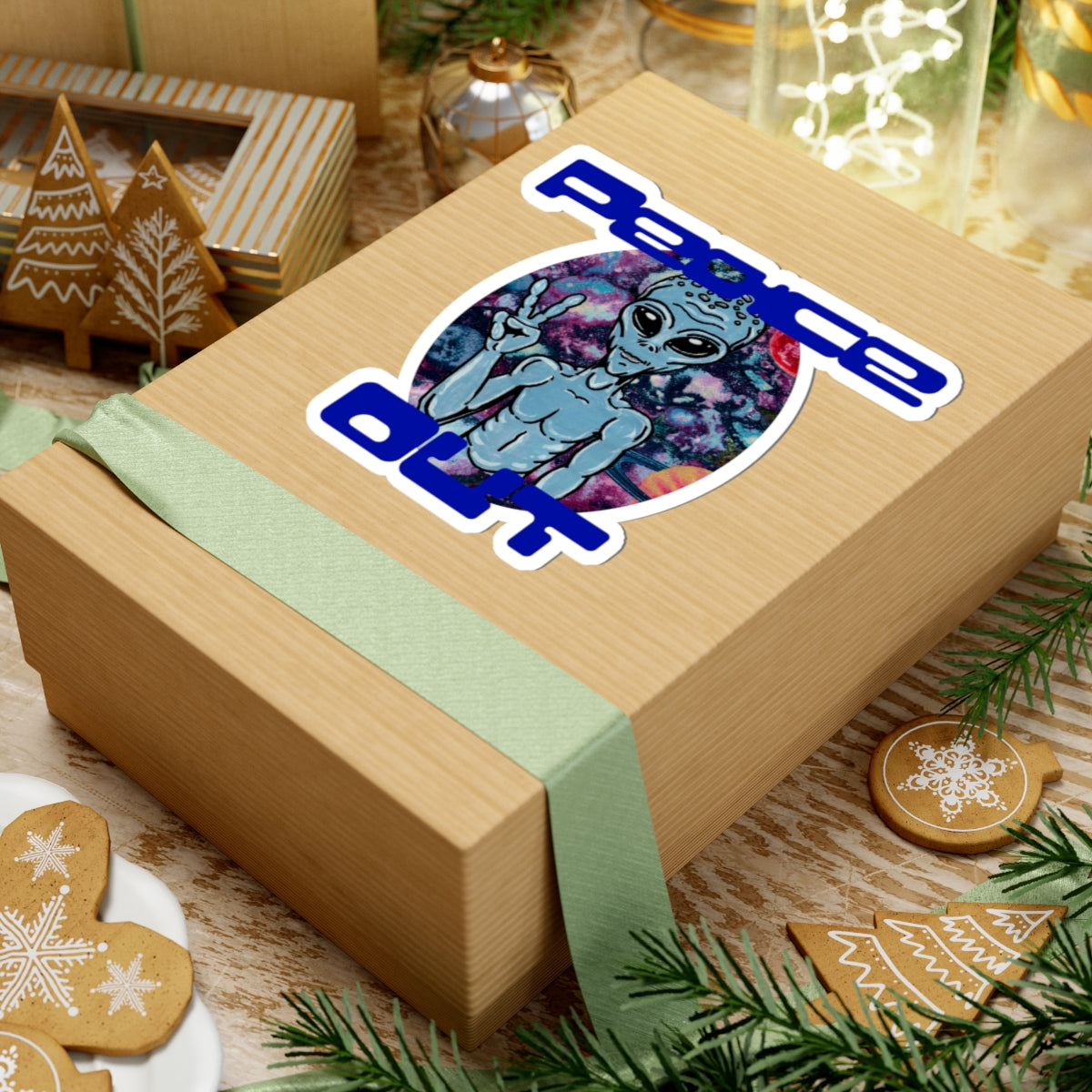 Peace Out Grey Alien Kiss-Cut Stickers